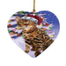Winterland Wonderland Bengal Cat In Christmas Holiday Scenic Background Heart Christmas Ornament HPOR53732