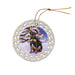 - Ceramic Ornament is flat and measures 3" in diameter