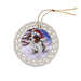 - Ceramic Ornament is flat and measures 3" in diameter