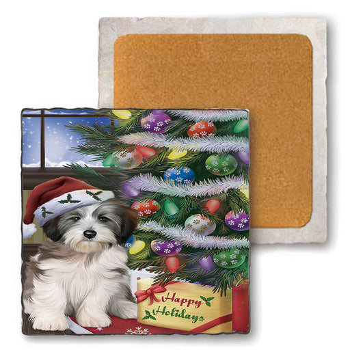 Original price $34.99 - Original price $34.99Original price $34.99$34.99$34.99 - $34.99Current price $34.99| /Christmas Happy Holidays Tibetan Terrier Dog with Tree and Presents Set of 4 Natural Stone Marble Tile Coasters MCST48866
