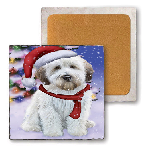 Original price $34.99 - Original price $34.99Original price $34.99$34.99$34.99 - $34.99Current price $34.99| /Winterland Wonderland Wheaten Terrier Dog In Christmas Holiday Scenic Background Set of 4 Natural Stone Marble Tile Coasters MCST48786