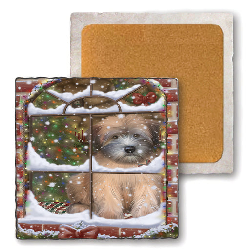 Original price $34.99 - Original price $34.99Original price $34.99$34.99$34.99 - $34.99Current price $34.99| /Please Come Home For Christmas Wheaten Terrier Dog Sitting In Window Set of 4 Natural Stone Marble Tile Coasters MCST48652