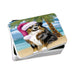 Summertime Happy Holidays Christmas Australian Shepherd Dog on Tropical Island Beach Photo Storage Tin