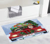 Christmas Honk Honk Red Truck Here Comes with Santa and Boston Terrier Dog Bath Mat BRUG53692