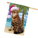Summertime Happy Holidays Christmas Bengal Cat on Tropical Island Beach House Flag FLG54732