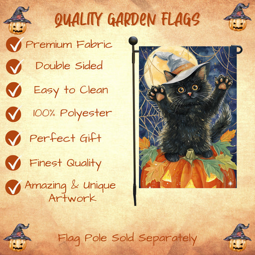 Original price $33.32Original price $33.32 - Original price $33.32Original price $33.32$14.99 - $16.99$14.99 - $16.99Current price $14.99| /Fall Autumn Halloween Black Cat Garden Flag with Witch Hat Sitting on Pumpkin Farmhouse Yard Banner for Cat Lovers Spider Web Patio Flag Decoration Single or Double Sided 12.5 x 18