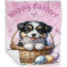 Easter Egg Hunt Border Collie with Bunny Ears Happy Easter Holiday Blanket, EGHNTBLNKTDG00016