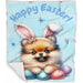 Easter Egg Hunt Pomeranian with Bunny Ears Happy Easter Holiday Blanket, EGHNTBLNKTDG00076