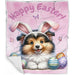 Easter Egg Hunt Shetland Sheepdog with Bunny Ears Happy Easter Holiday Blanket, EGHNTBLNKTDG00092