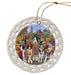 - Ceramic Ornament is flat and measures 3" in diameter