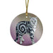 - Ceramic Ornament is flat and measures 2.75" in diameter