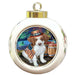 4th of July Independence Day Fireworks Brittany Spaniel Dog at the Lake Round Ball Christmas Ornament RBPOR50934