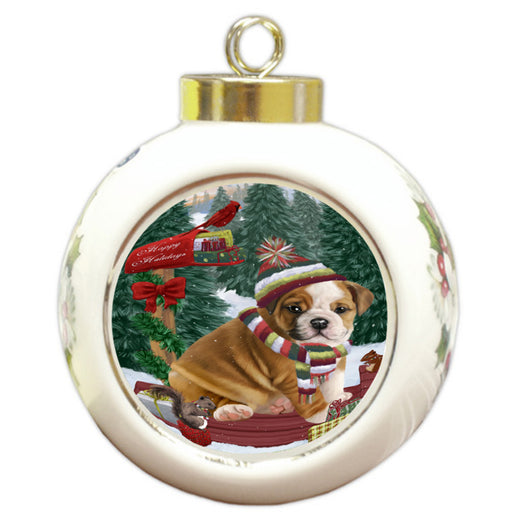 Original price $38.84Original price $38.84 - Original price $38.84Original price $38.84Current price $34.99$34.99 - $34.99Current price $34.99| /Merry Christmas Woodland Sled Bulldog Round Ball Christmas Ornament RBPOR55232