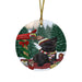 - Ceramic Ornament is flat and measures 2.75" in diameter