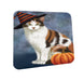 Happy Halloween Calico Cat Wearing Witch Hat with Pumpkin Coasters Set of 4 CST54835