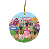 - Ceramic Ornament is flat and measures 2.75" in diameter