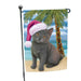 Christmas Holiday Summer Time Chartreux Kitten on Beach Wearing Santa Hat Garden Flag FLG176