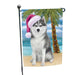 Christmas Holiday Summer Time Husky Dog on Beach Wearing Santa Hat Garden Flag FLG186