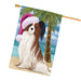 Christmas Holidays Summer Time Papillon Dog on Beach Wearing Santa Hat House Flag FLG190
