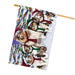 Shetland Sheetdog Dog Christmas Family Portrait in Holiday Scenic Background House Flag