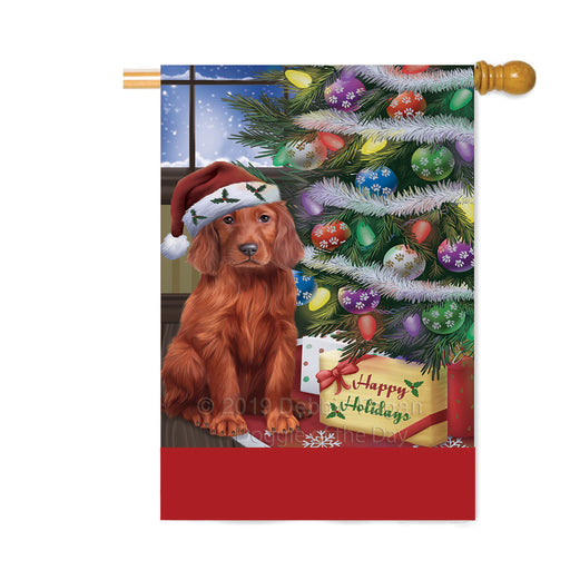 Original price $33.32Original price $33.32 - Original price $33.32Original price $33.32Current price $24.99$24.99 - $24.99Current price $24.99| /Personalized Christmas Happy Holidays Irish Red Setter Dog with Tree and Presents Custom House Flag FLG-DOTD-A58695