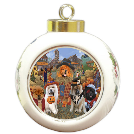Halloween 'Round Town And Fall Pumpkin Scarecrow Both Chow Chow Dogs Round Ball Christmas Ornament RBPOR57454