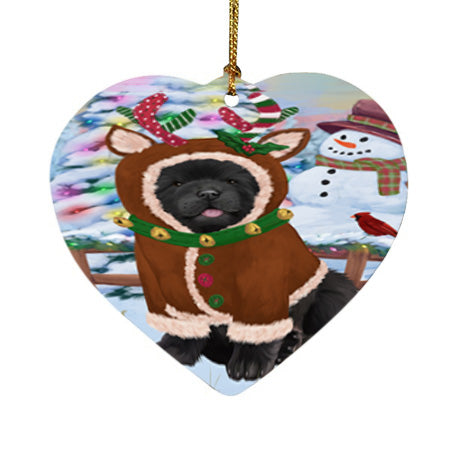 Merry Christmas Woodland Sled Chow Chow Dog Heart Christmas Ornament HPOR55260