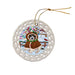 - Ceramic Ornament is flat and measures 3" in diameter