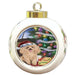 Christmas Happy Holidays Poodle Dog with Tree and Presents Round Ball Christmas Ornament RBPOR53849