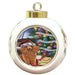Christmas Happy Holidays Poodle Dog with Tree and Presents Round Ball Christmas Ornament RBPOR53850
