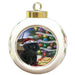 Christmas Happy Holidays Poodle Dog with Tree and Presents Round Ball Christmas Ornament RBPOR53851
