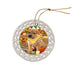- Ceramic Ornament is flat and measures 3" in diameter
