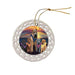 - Ceramic Ornament is flat and measures 3" in diameter