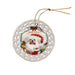 - Ceramic Ornament is flat and measures 3" in diameter