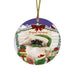- Ceramic Ornament is flat and measures 2.75" in diameter
