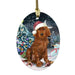 Have a Holly Jolly Christmas Happy Holidays Irish Red Setter Dog Oval Glass Christmas Ornament OGOR48292