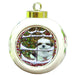 - Ceramic Ornament is round and measures 3" in diameter