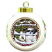 - Ceramic Ornament is round and measures 3" in diameter