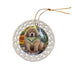 - Ceramic Ornament is flat and measures 3" in diameter