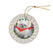 - Ceramic Ornament is flat and measures 3" in diameter