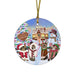 - Ceramic Ornament is flat and measures 2.75" in diameter