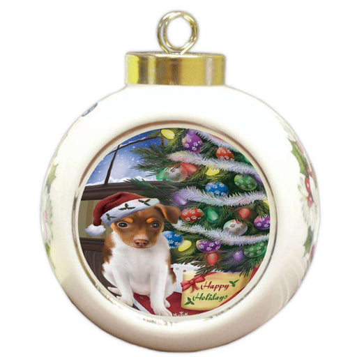 Original price $38.84Original price $38.84 - Original price $38.84Original price $38.84Current price $34.99$34.99 - $34.99Current price $34.99| /Christmas Happy Holidays Rat Terrier Dog with Tree and Presents Round Ball Christmas Ornament RBPOR53852