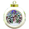 Alaskan Malamute Dog Christmas Family Portrait in Holiday Scenic Background Round Ball Ornament D157
