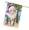 Christmas Holidays Summer Time American Curl Cat on Beach Wearing Santa Hat House Flag FLG161