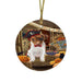 Enter at Own Risk Trick or Treat Halloween Rat Terrier Dog Round Flat Christmas Ornament RFPOR53227