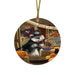 Enter at Own Risk Trick or Treat Halloween Schnauzer Dog Round Flat Christmas Ornament RFPOR53257