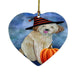 Happy Halloween Wheaten Terrier Dog Wearing Witch Hat with Pumpkin Heart Christmas Ornament HPOR54944