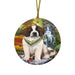 Scenic Waterfall Saint Bernard Dog Round Flat Christmas Ornament RFPOR49511