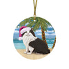Summertime Cymric Cat on Beach Christmas Round Flat Ornament POR1666