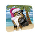 Summertime Happy Holidays Christmas Australian Shepherd Dog on Tropical Island Beach Coasters Set of 4